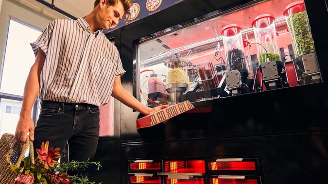 It’s not hard to see why backers would feel bullish about investing in a revolutionary shift in the $54 billion U.S. pizza market. The 24/7/365 pods, about the size of two vending machines, will be placed in high-traffic areas like airports and colleges. Hungry customers enter their order on a touchscreen, then diligent robots get to work crafting the customized pizza order right in front of the buyer’s eyes. Three minutes later, that personalized pizza is cooked and ready to eat.