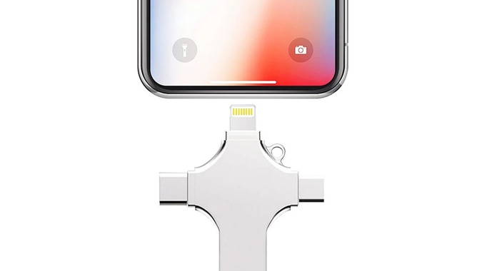 When you sense that happening, it’s time to move some files around. Sure, you can put them in the cloud, but if you need important files handy or want to give them the extra security of being on a physical device, you need a flash drive. This 4-in-1 Smart Flash Drive meets the call.